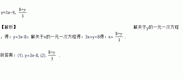 已知方程3x-y=8,用含x的代数式表示y,得__________ ;用含y的代数式表示x,得____________