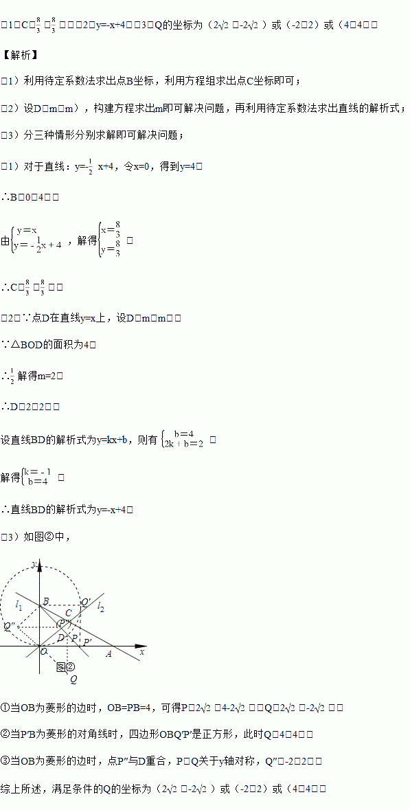 (3)如图②,在(2)的条件下,设P是射线BD上的点,在平面内是否存在点Q,使以O、B、P、Q为顶点的四边形是菱形?若存在,直接写出点Q的坐标;若不存在,请说明理由.