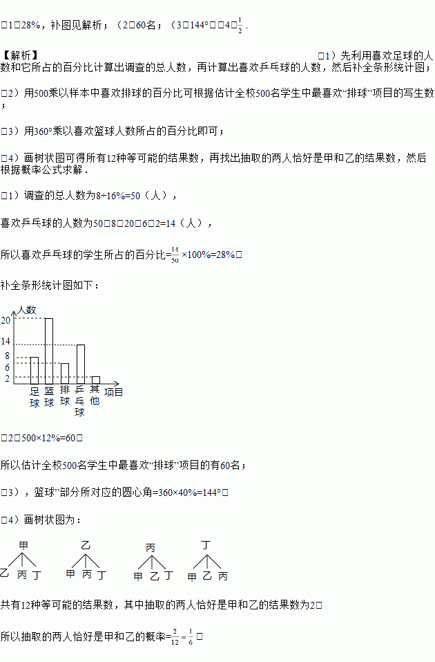 УÌåÓý×éΪÁ˽âȫУѧÉú¡°×îϲ»¶µÄÒ»ÏîÇòÀàÏîÄ¿¡±£¬Ëæ»ú³éÈ¡Á˲¿·ÖѧÉú½øÐе÷²é£¬ÏÂÃæÊǸù¾Ýµ÷²é½á¹û»æÖƵIJ»ÍêÕûµÄͳ¼ÆÍ¼£º