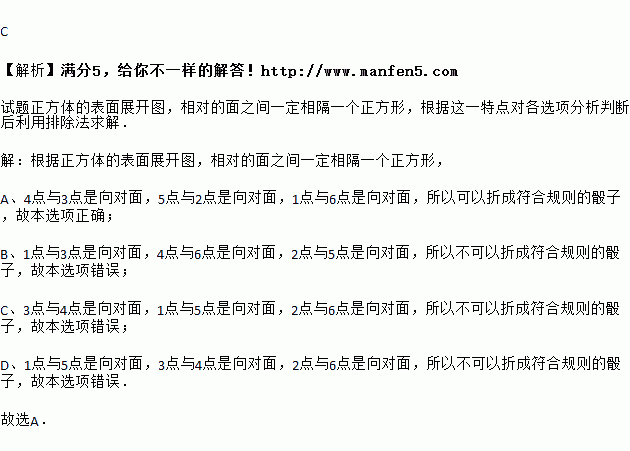 骰子是一种特别的数字立方体(如图),它符合规则:相对面的点数之和总是7,下面四幅图中可以折成符合规则的骰子的是( )