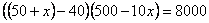 将进货单价为40元的商品按50元售出时,就能卖出500个.已知这种商品每个涨1元,其销售量就减少10个.为了赚取8000元利润,售价应定为多少?这时应进货多少个?