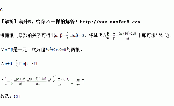 若α,β是一元二次方程3x2+2x-9=0的两根,则的值是( ).