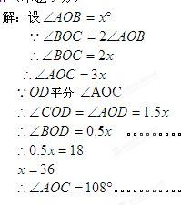 (本题9分)如图,,平分,∠BOD=180,求的度数.