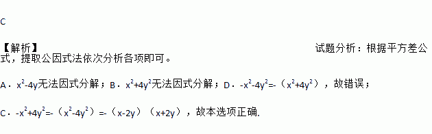 把下列各式分解因式结果为-(x-2y)(x+2y)的多项式是( )