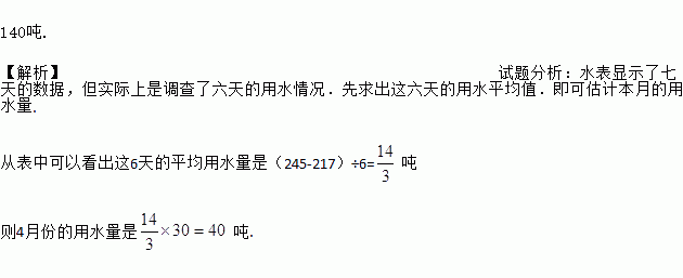 李娟同学为考察学校的用水情况,她在4 月份一周内同一时刻连续记录了水表的示数,记录结果如下表: