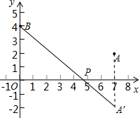 解:点A关于x轴的对称点A′为(7,-2),设过A′B的解析式为y=kx+b
