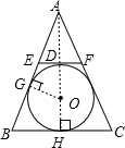 解:连接AO并延长交EF于点D,交BC于点H,则AH⊥BC,连接OG,则OG⊥AB