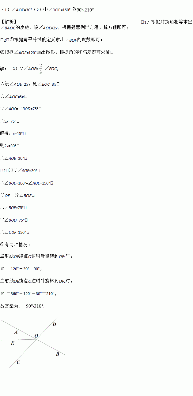 如图,直线AB、CD相交于点O.已知∠BOD=75°,OE把∠AOC分成两个角,且∠AOE=