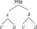 可得所有可能选择的结果有四种AC,AD,BC,BD;