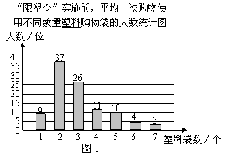 £¨1£©²¹È«Í¼1£¬¡°ÏÞËÜÁʵʩǰ£¬Èç¹ûÿÌìÔ¼ÓÐ2 000È˴ε½¸Ã³¬ÊйºÎ¸ù¾ÝÕâ100λ¹Ë¿Íƽ¾ùÒ»´Î¹ºÎïʹÓÃËÜÁϹºÎï´üµÄƽ¾ùÊý£¬¹À¼ÆÕâ¸ö³¬ÊÐÿÌìÐèҪΪ¹Ë¿ÍÌṩ¶àÉÙ¸öËÜÁϹºÎï´ü£¿