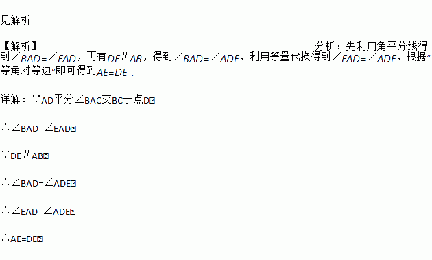 如图,在△ABC中,AD平分∠BAC交BC于点D,过点D作DE∥AB交AC于点E.