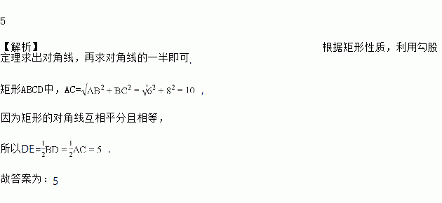 如图,矩形ABCD中,AC与BD的交点为E,若AB=6,BC=8,则DE= _____________ .