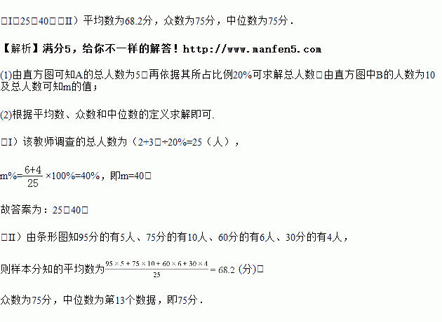 (Ⅰ)该教师调查的总人数为 ,图②中的m值为 ;