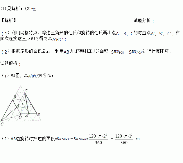如图是由边长为1的小正三角形组成的网格图,点O和△ABC的顶点都在正三角形的格点上,将△ABC绕点O逆时针旋转120°得到△A′B′C′.