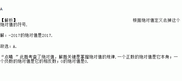 -2017的绝对值是( )