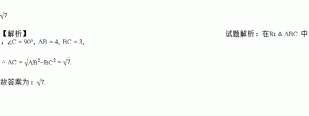 在Rt△ABC中,∠C=90°,AB=4,BC=3,则AC的长为____.
