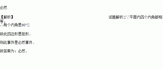 “平面内四只内角都相等的四边形是矩形”是________事件.(填“必然”、“随机”、“不可能”)