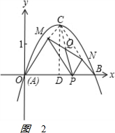 ②将x1、x2的表达式代入x1<1<x2中即可求出a的取值范围,结合a是整数的条件可求出a的值,由此可确定抛物线的解析式;求PQ的取值范围时,过C作CD⊥x轴于D,连接CQ;根据抛物线的解析式,易求得点C的坐标,即可得到AD、CD的长,由此可求出∠BAC=60°,根据抛物线的对称性即可得到∠ABC=∠BAC=60°,由此可知△ABC是等边三角形,而△AMP、△BNP也是等边三角形,那么M、N分别在线段OC和线段BC上;易知CM∥PN,MP∥BC,则四边形PNCM是平行四边形,而Q是MN的中点,则Q也是CP的中点,即C、Q、P三点共线,由此可得PC=2PQ;在等边三角形ABC中,P在线段AB上运动,且不与A、B重合,因此PQ的取值范围应该在AD和AC长之间,可据此求出PQ的取值范围.
