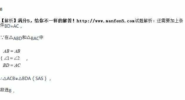 如图,AC、BD相交于点O,∠1=∠2,若用“SAS”说明△ACB≌△BDA,则还需要加上条件( )