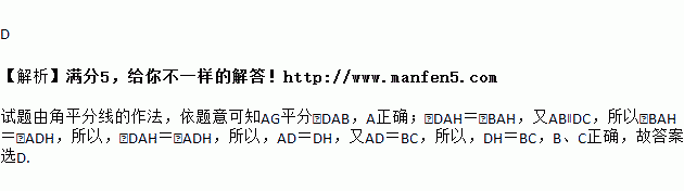 A. AG平分∠DAB B. AD=DH C. DH=BC D. CH=DH
