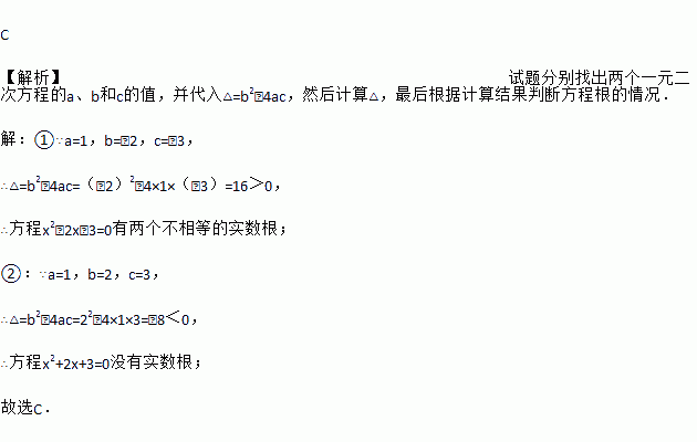 A. ①②都有实数解 B. ①无实数解,②有实数解