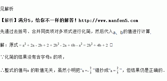 小明和小丽一起做同样一道题:计算的值,其中,.粗心的小明把错抄成,所得结果却与小丽的正确结果相同,聪明的你知道这是为什么吗?