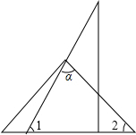 解:如图,三角板的∠1=60°,∠2=45°,