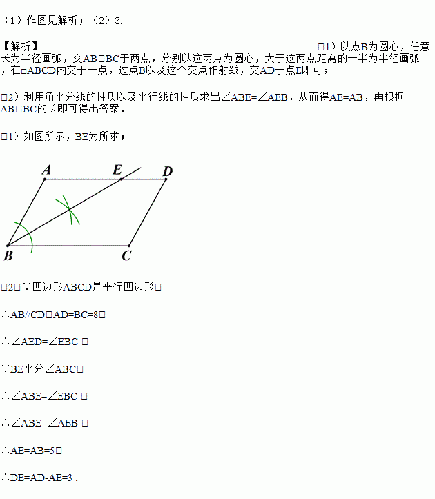 (1)作∠ABC的角平分线交线段AD于点E(用尺规作图,保留作图痕迹,不要求写作法):
