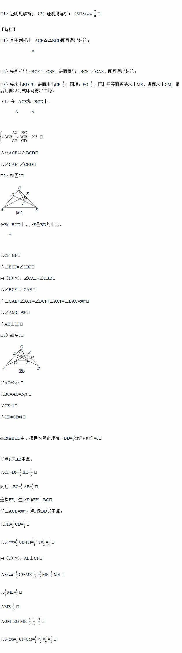 (3)如图3,F,G分别是BD,AE的中点,若AC=2