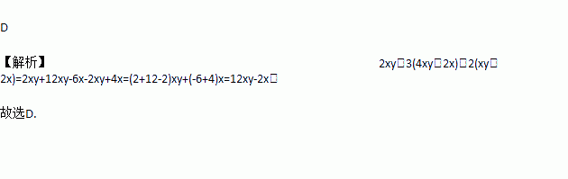 化简2xy+3(4xy-2x)-2(xy-2x)的结果是( )