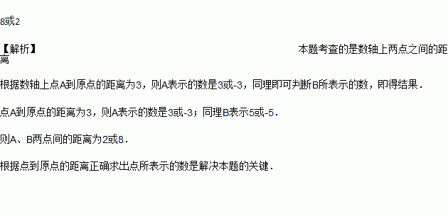 如果数轴上点A到原点的距离为3,点B到原点的距离为5,那么A、B两点的距离为