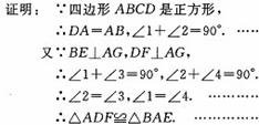 18、在正方形ABCD中,点G是BC上任意一点,连接AG,过B,D两点分别作BE⊥AG,DF⊥AG,垂足分别为E,F两点,求证:△ADF≌△BAE.