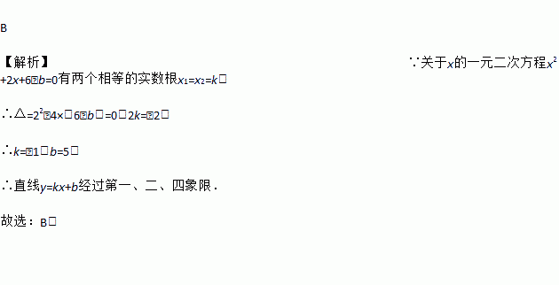 如果关于x的一元二次方程x2+2x+6﹣b=0有两个相等的实数根x1=x2=k,则直线y=kx+b必定经过的象限是( )