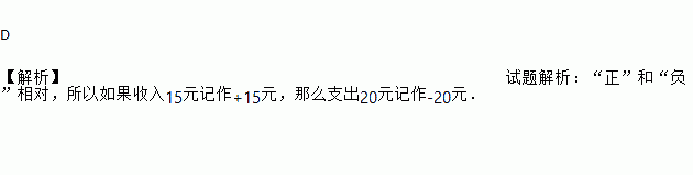 D 【解析】试题解析:“正”和“负”相对,所以如果收入15元记作+15元,那么支出20元记作-20元.