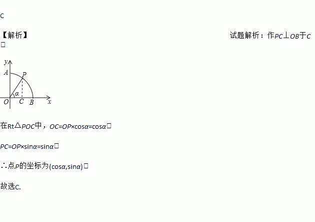 上一点(不与A,B重合),连接OP,设∠POB=α,则点P的坐标是