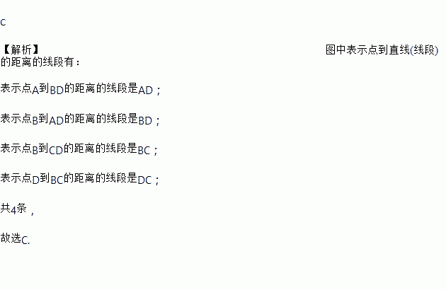 如图所示,能表示点到直线(线段)的距离的线段有( )