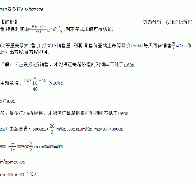 (1)问最多打几折销售,才能保证每箱脐橙的利润率不低于10%?