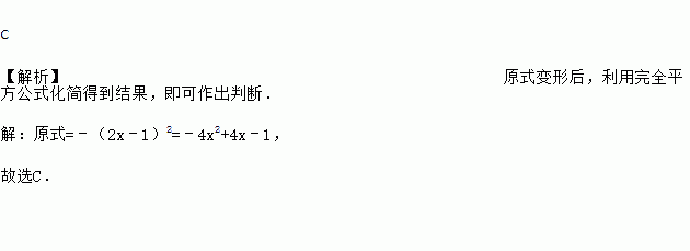 A. 4x2﹣1 B. 1﹣4x2 C. ﹣4x2+4x﹣1 D. 4x2﹣4x+1