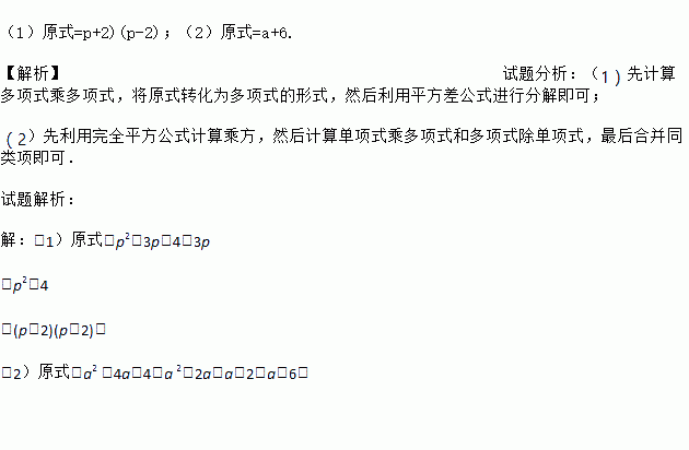 (1)分解因式:(p+4)(p-1)-3p;