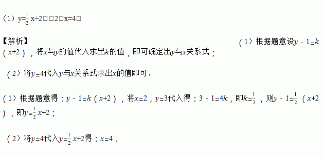 已知:y﹣1与x+2成正比例,且当x=2时,y=3.
