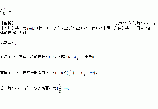 若一个正方体木块的体积是3 m3,现将它锯成8个同样大小的小正方体木块,求每个小正方体木块的表面积.