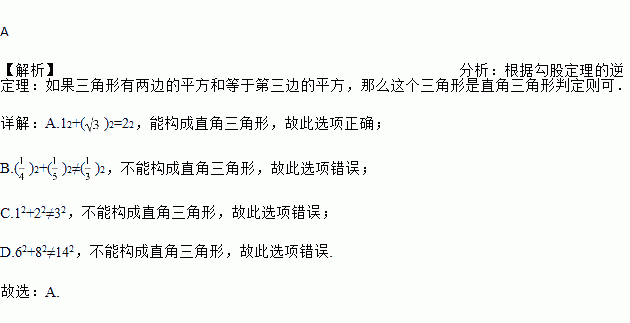 下列四组数中,能构成直角三角形的边长的一组是( )