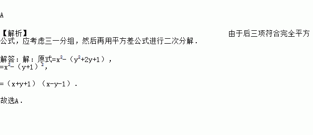 A.(x+y+1)(x-y-1) B.(x+y-1)(x-y-1)