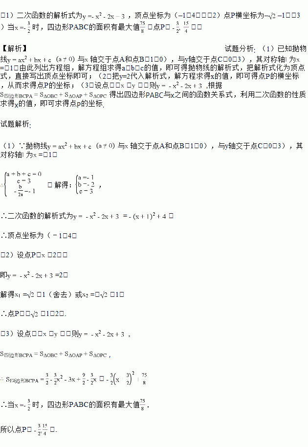(1)求抛物线的解析式并写出其顶点坐标;