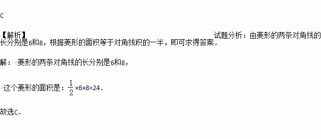 菱形的两条对角线长分别为6和8,则菱形的面积是( )