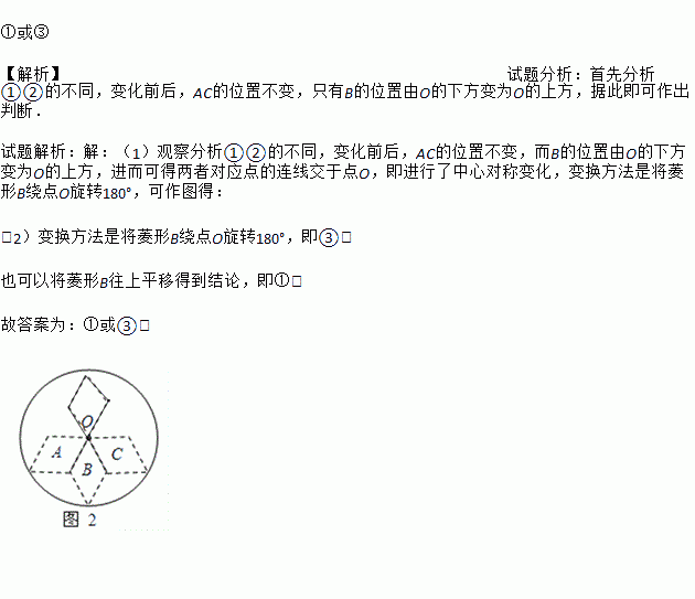 ¢Ù½«ÁâÐÎBÏòÉÏÆ½ÒÆ£»¢Ú½«ÁâÐÎBÈÆµãO˳ʱÕëÐýת120¡ã£»¢Û½«ÁâÐÎBÈÆµãOÐýת180£®