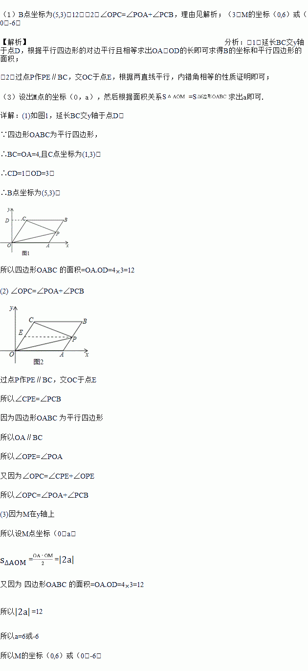 (1)求B点坐标及平行四边形OABC的面积