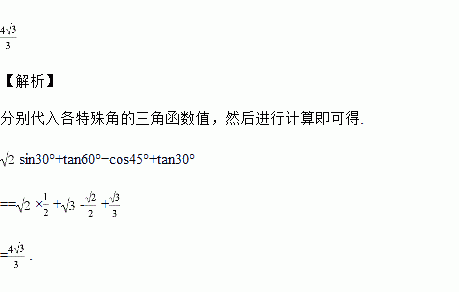 sin30°+tan60°?cos45°+tan30°.