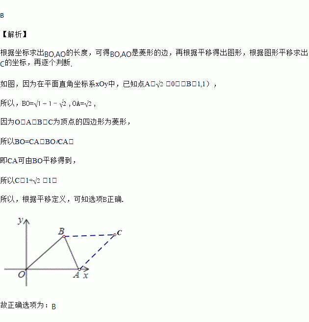 ,0),B(1,1),若平移点A到点C,使得以点O,A,B,C为顶点的四边形为菱形,正确的是( )