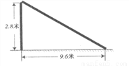 如图,一次“台风”过后,一根旗杆被台风从离地面2.8米处吹断裂,倒下的旗杆的顶端落在离旗杆底部9.6米处,那么这根旗杆被吹断裂前有多高?(旗杆粗细、断裂磨损忽略不计)